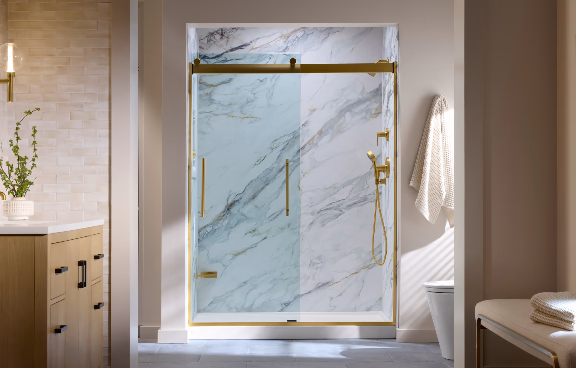 Upgrade your shower with Reveal by KOHLER – custom design, premium LuxStone® walls, and expert installation in as little as a day.